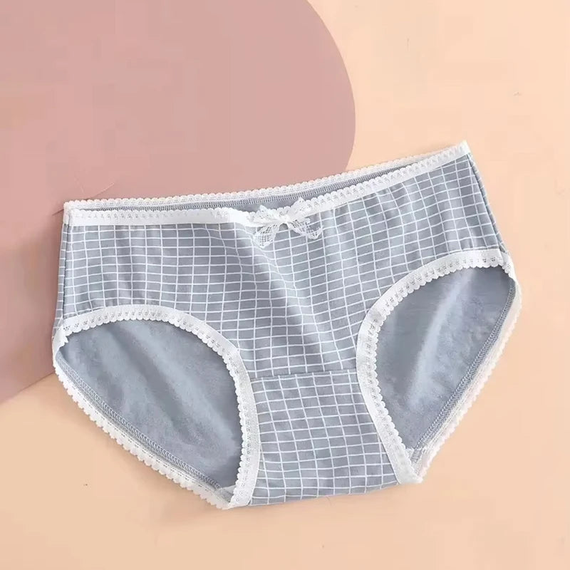 5pcs Heart Plaid Print Briefs Comfy Cute Bow Intimates Panties Women's Lingerie Underwear