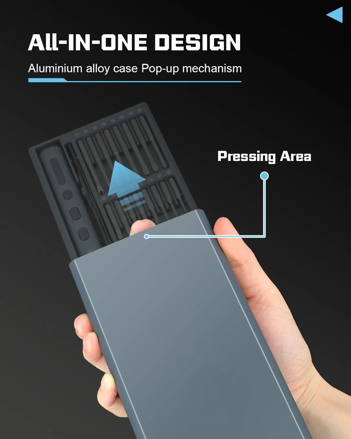 Organization Magnetic Case: Magnetic storage case that keeps everything in place. The pop-up mechanism adds a touch of satisfaction to every use, ensuring your tools and bits remain neatly organized