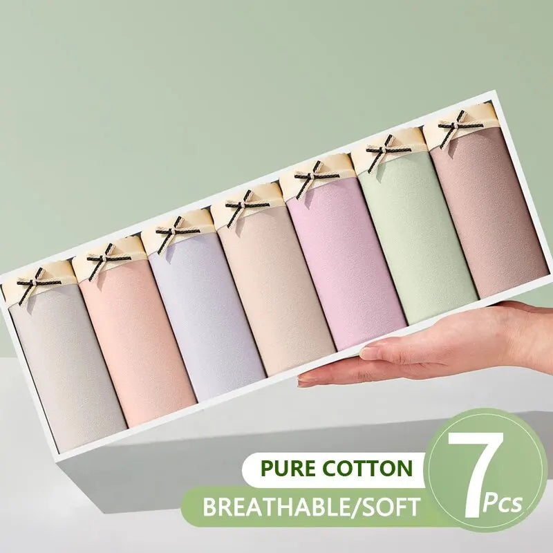 7Pcs Women's Panties Cotton Underwear Cute Bow Girls Briefs Solid Panty Breathable Underpants Sexy Low Waist Female Lingerie