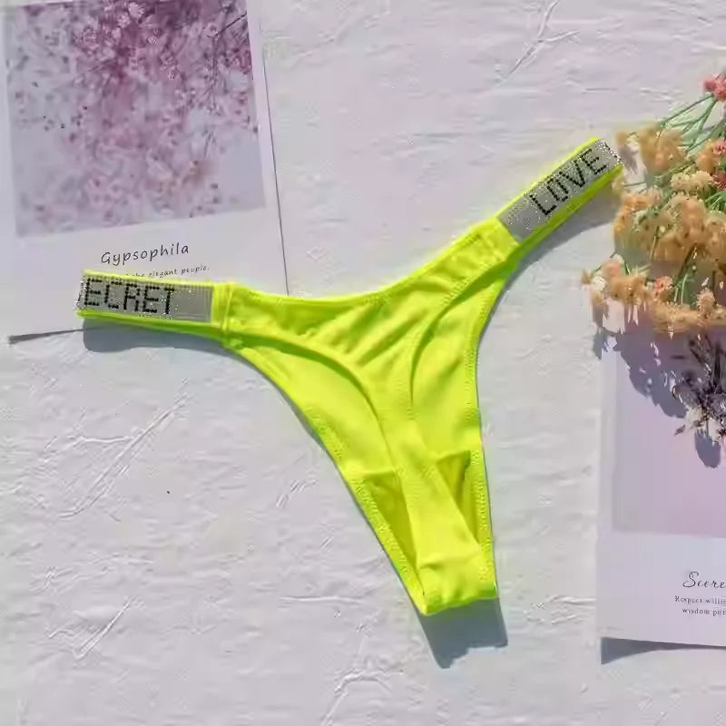Fashionable ladies lingerie short waist ladies lingerie style, crystal letters comfortable pink thong sexy swimming trousers