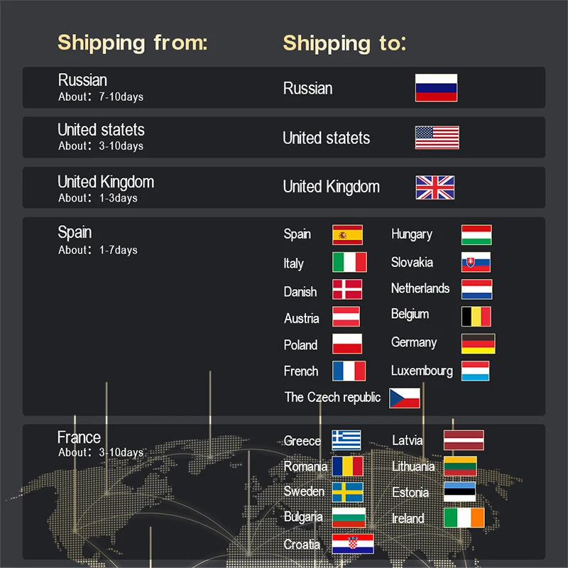 shipping: By seas, air, road, subway, DHL, UPS, TNT, FEDEX or in your view