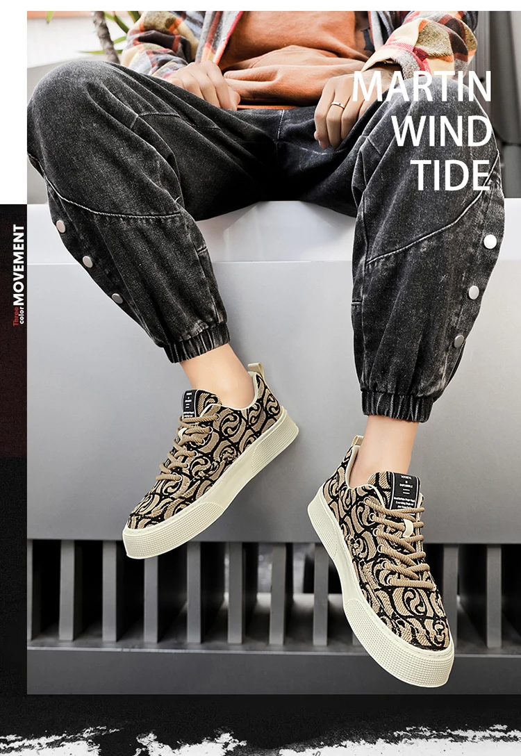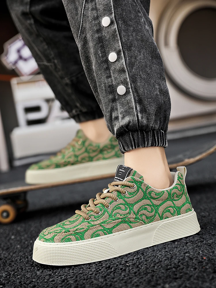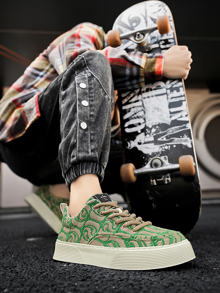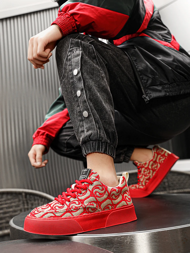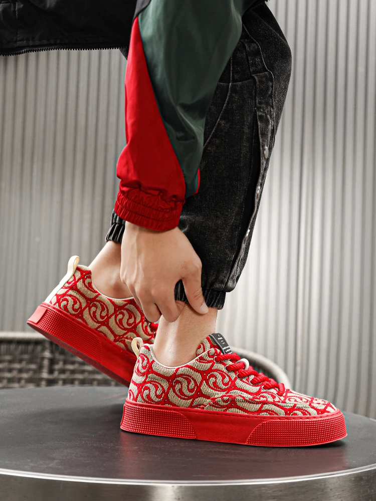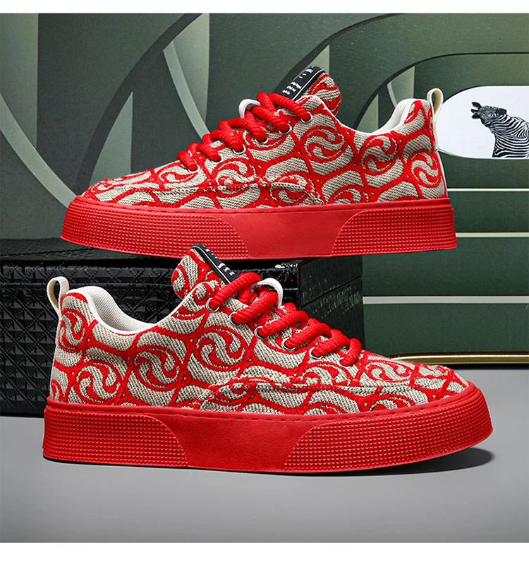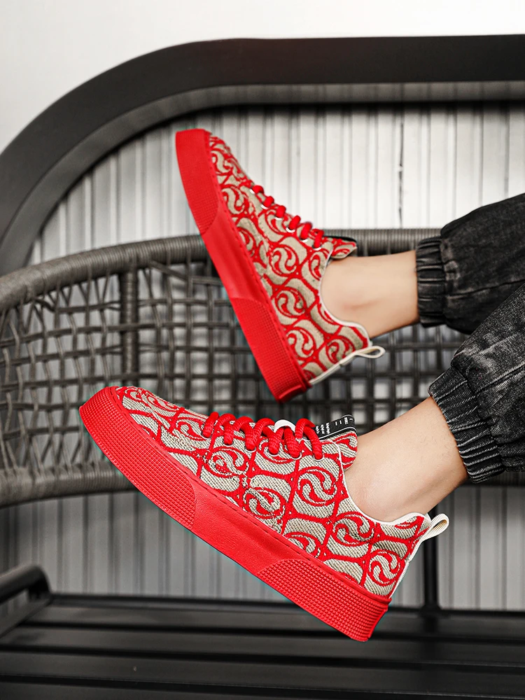 Hot Selling Red Canvas Shoes Men Trendy Print Skateboard Shoes For Man Low Cut Platform Skate Sneakers Male zapatos para hombre