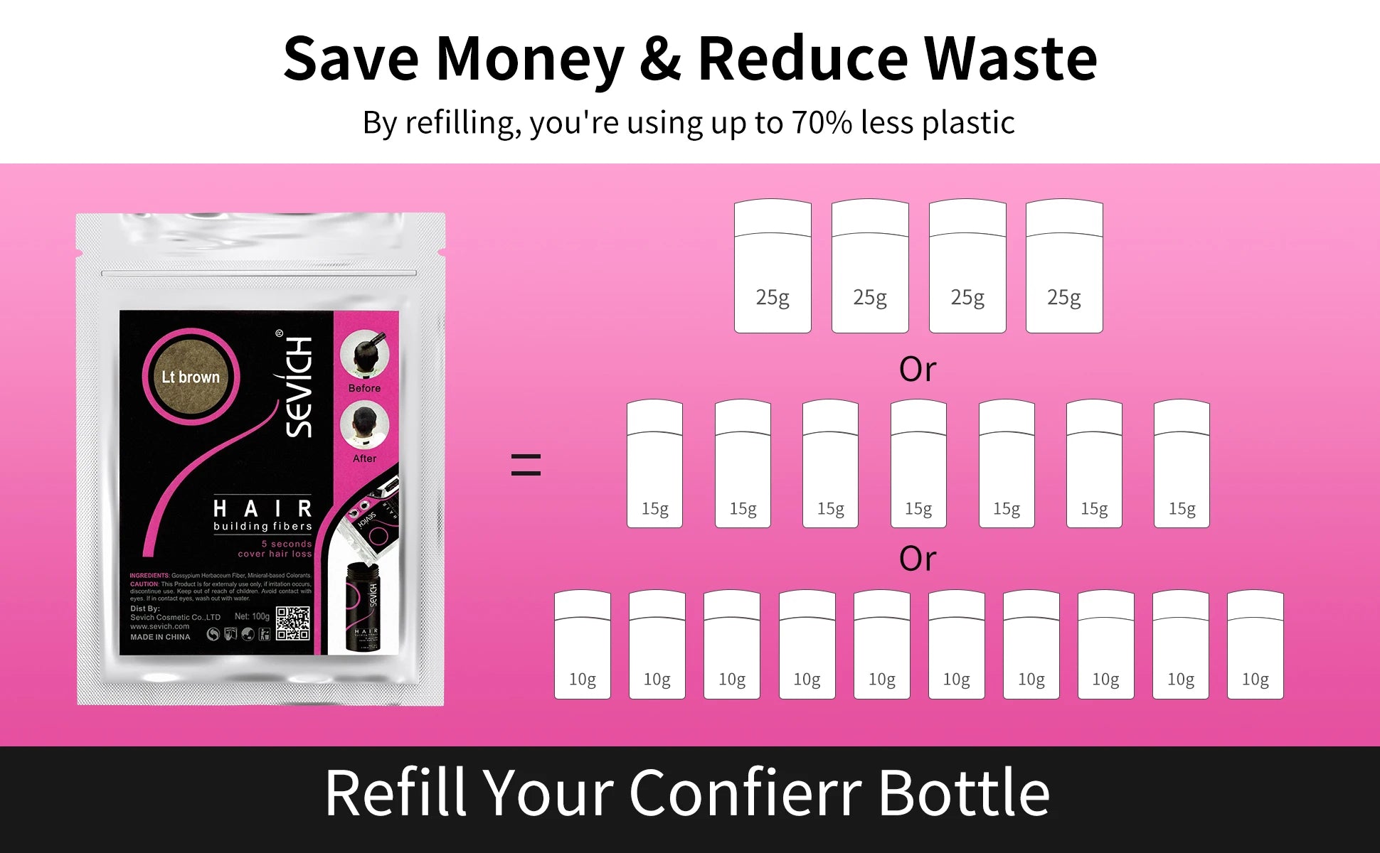 Sevich Hair Fiber For Thinning Hair & Bald Spot Instant Hair Growth Fiber Fill In Fine Or Thinning Hair Instantly Thicker Powder